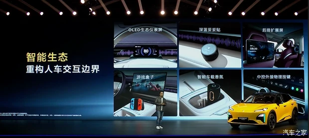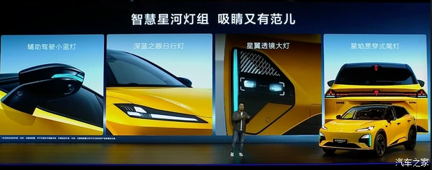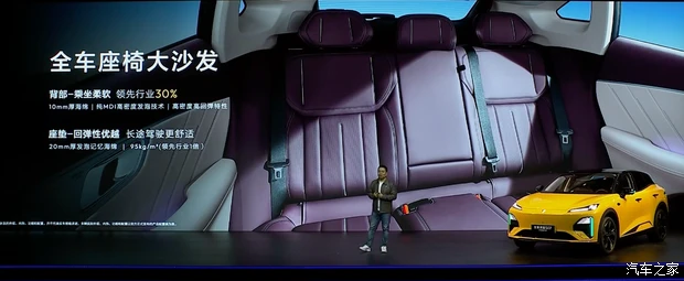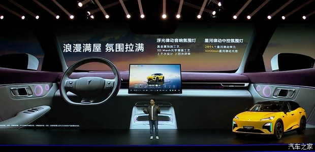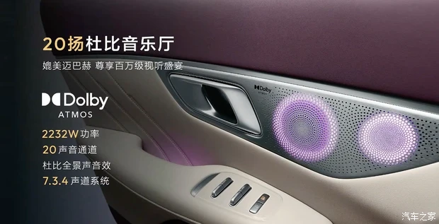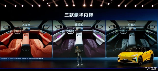 内饰方面,新车将采用环抱式中控台设计,贯穿式的空调出风口搭配双辐式多功能方向盘、55英寸AR-HUD、15.6英寸悬浮式向日葵屏(内置高通骁龙8295P芯片)以及20枚扬声器(杜比全景声),让这款车看上去十分具有质感。同时,其中控屏下方T字区域加入手机无线充电、双杯架等,提升日常用车便利性。