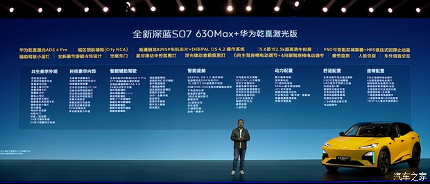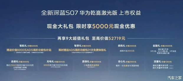 如今消费者对车辆智能化的要求越来越高,即便是十几万级别的家用SUV,也已进入智驾内卷时代。今天完成上市的深蓝S07华为乾崑激光版,将辅助驾驶系统从现款的华为乾崑ADS 4 SE升级至华为乾崑 ADS 4 Pro,智驾能力实现大幅跃升。相比阿维塔、鸿蒙智行旗下部分车型较高的入手门槛,深蓝S07华为乾崑激光版的推出,让用户能以更亲民的价格,体验到华为高阶激光智驾。对于追求高性价比家用SUV、同时对智能驾驶有较高需求的消费者而言,这款车无疑是极具吸引力的优选。