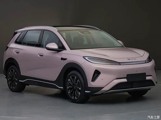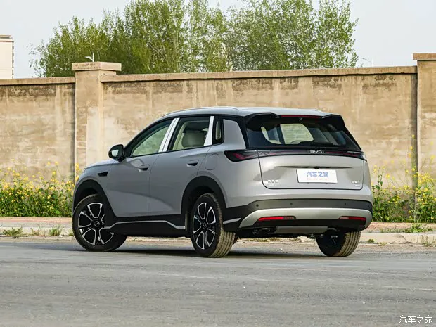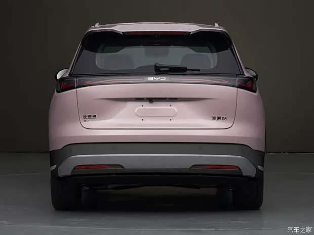 海狮05 EV车身侧面,新车整体线条流畅,配备半隐藏式门把手、熏黑车窗饰条与D柱分体式造型,营造出悬浮式车顶效果,新车还配备18英寸双色花瓣式轮圈,侧裙处的熏黑饰板进一步丰富视觉层次。车辆尾部设计简洁饱满,采用熏黑贯穿式尾灯组,中央配有“BYD”标识。车顶上方配备分段式扰流板,后包围造型厚重,排气采用隐藏式布局。车身尺寸方面,新款海狮05长宽高分别为4620/1860/1630mm,轴距为2770mm,相比现款车型,尺寸有所变化。车辆还提供17/18英寸轮圈可供选择。