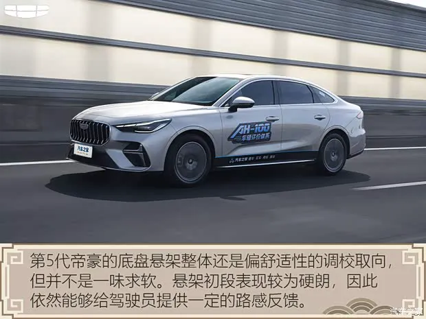 ● 日常驾驶第5代帝豪的底盘悬架整体还是偏舒适性的调校取向,但并不是一味求软。悬架初段保留了比较硬朗的设定,因此依然能够给驾驶员提供一定的路感反馈。面对细碎振动和路面接缝时,底盘对于路面信息的传递比较直接,既不会显得过于生硬,也不会让人觉得隔绝感太强,整体拿捏还是偏均衡的。同时,这样的调校也让车辆在日常并线和弯道行驶时具备一定支撑性,车身动态不算松散。