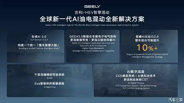 星瑞i-HEV智擎混动基于GEEA 3.0智能化专属电子电气架构打造,搭载星睿AI云动力2.0大模型,从分布式域控向“中央超级大脑”进化,千兆级信息传输速度,可实现快速FOTA智慧迭代升级,持续优化车辆性能与智能体验。辅助驾驶层面,新车搭载千里浩瀚辅助驾驶H3方案,芯片算力128TOPS,其中,HNOA高速领航驾驶辅助可实现进出匝道规划,危险场景提前规避,智能泊车辅助覆盖多种类车位,一键操作即可精准泊车。
