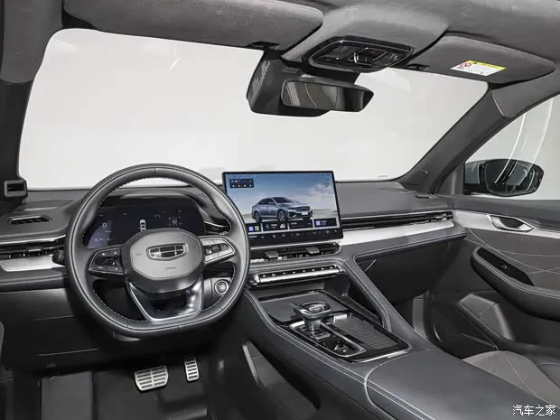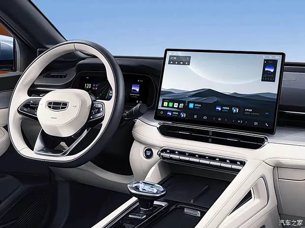 燃油车型内饰方面,天山润白内饰色,星瑞i-HEV智擎混动同样延续现款车型设计,搭配256色氛围灯和细腻的皮质包覆,提供10.2英寸全液晶仪表+14.6英寸中控屏,搭载Flyme Auto智能座舱系统,内置高通骁龙8155芯片,提供HiCar、Carlink、Flyme link互联系统。