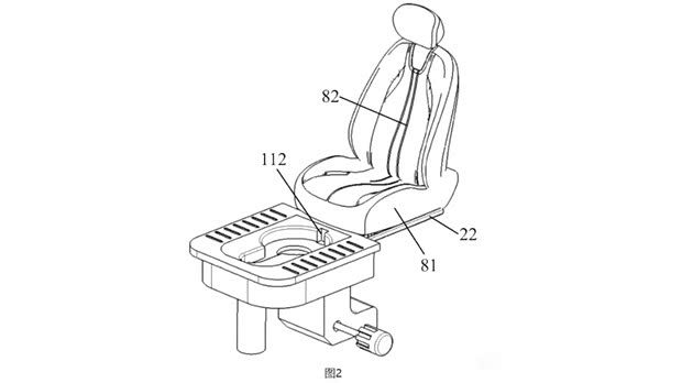 这款隐藏式马桶采用抽屉式滑轨结构,支持手动拉出或语音召唤两种使用方式。为避免异味困扰,专利中还配备了风扇排气系统,可将异味排出车外;同时搭载加热元件,能烘干固体污物并蒸发液体,排泄物则储存在可拆卸水箱中,需手动清空。