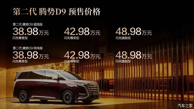 本次下线的第二代腾势D9,新车预售价为38.98万-48.98万。作为全球首款搭载第二代刀片电池的量产MPV,该车搭载比亚迪第二代刀片电池,续航实力全面突破:插混车型纯电续航达401km,纯电车型续航高达800km;并带来“5分钟充好,9分钟充饱,零下30℃充电仅多3分钟”的充电体验。