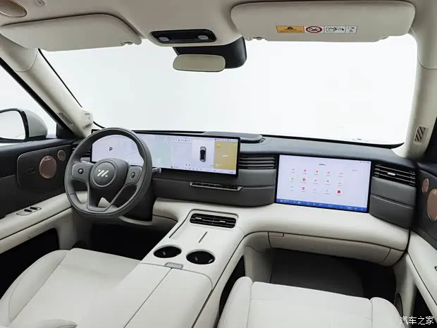 ●内饰家族式布局,配色用料够豪华内饰方面,智己LS8采用环抱式的家族设计,有着大面积软包材质覆盖,提供了大象灰棕、大象灰米以及大象灰黑三款配色。车辆配备27.1英寸5K MiniLED中控屏、15.6英寸3K副驾娱乐屏与21.5英寸二排4K吸顶屏的多屏组合,并且配备18扬声器B&O音响系统。车机系统方面,智己LS8搭载IM Ultra Agent 1.0智能交互系统,融入了阿里千问大模型,硬件则是采用了高通8295P芯片,算力与流畅度较上一代产品大幅提升。
