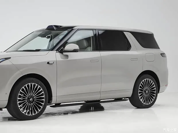 车身侧面,车辆依然采用悬浮式车顶设计,并采用隐藏式门把手和电吸门,入门版就标配20英寸轮圈,并提供21英寸样式可选。车身尺寸方面,新车长宽高分别为5085/2000/1807mm,轴距为3060mm,尺寸相比LS9要小,但依然为一台中大型SUV。