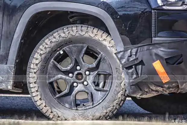 从谍照来看,新车整体轮廓与普通版切诺基保持一致,但在细节上加入大量Trailhawk专属越野元素。最显眼的变化是换装了Nexen Roadian ATX全地形轮胎,规格为245/65 R17。车辆前后保险杠均带有伪装覆盖,预示量产版将采用全新造型设计,接近角与离去角明显优于普通版,提升越野通过能力。同时,保险杠预留了拖车钩安装位置,实用性更强。此外,测试车伪装胶带下清晰露出Trailhawk专属徽章轮廓。
