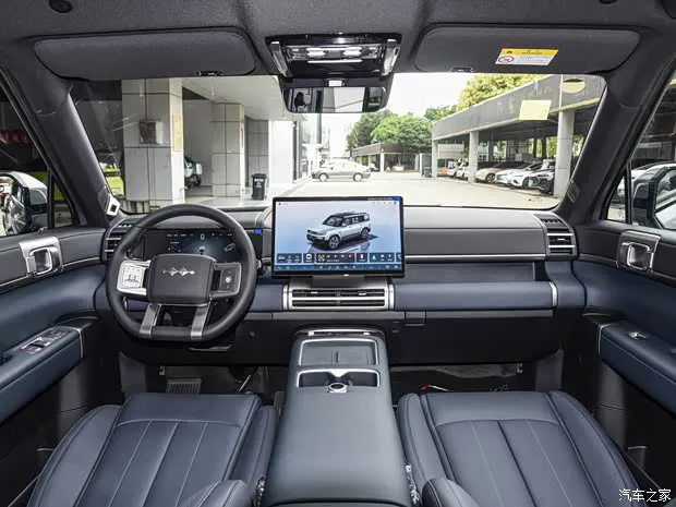 外观方面,钛7 EV闪充版延续钛7的设计,方盒子造型设计,车头采用双层的大灯设计,整个前包围加入了H型的银色护板,看上去相当粗犷,车顶配备有激光雷达,纯电车型车头新增前备厢。