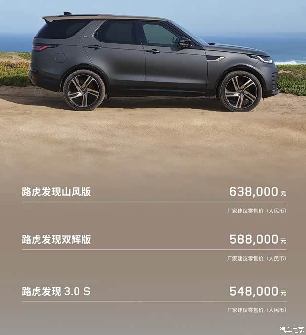 4月10日,路虎发现(参数|询价)特别版上市,新车共计推出3款车型,售价54.8-63.8万元。新车购车享5年超长期限,前2年0息36期0首付起,活动截止至6月30日。 路虎发现特别版 官方售价 车型 售价(万元) 3.0 S 54.8 双辉版 58.8 山风版 63.8