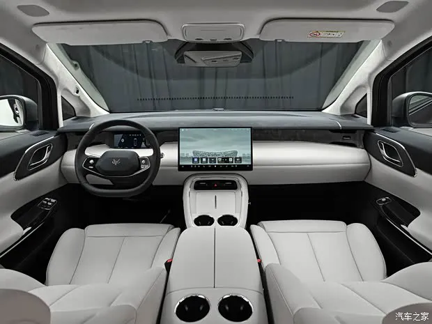 内饰方面,整体采用双色内饰设计,256色星河光韵氛围灯,中央配备大尺寸的悬浮式中控屏,方向盘也是两辐式样式,前部配备小仪表屏,中控台下方提供无线充电面板。