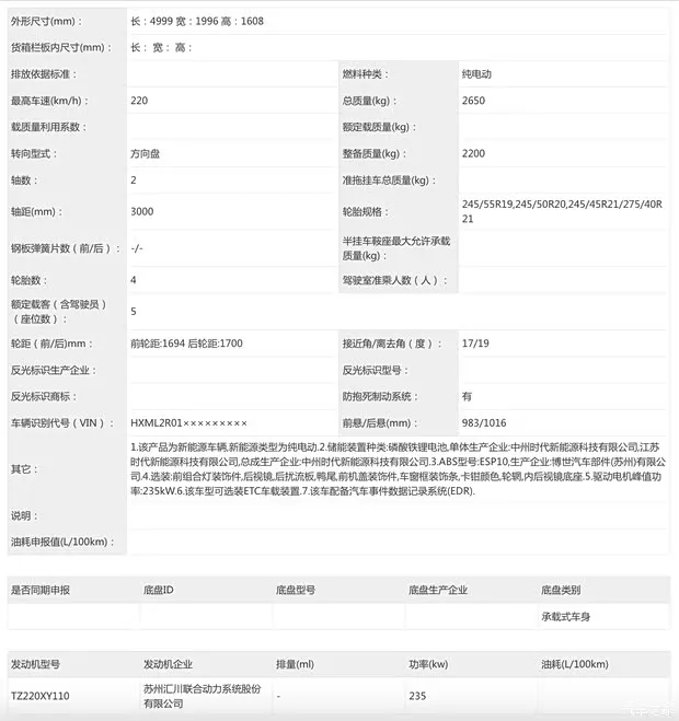 动力方面,新车搭载苏州汇川联合动力系统股份有限公司的生产的电机,单电机最大功率235千瓦,与现款超长续航后驱版保持一致,搭载宁德时代磷酸铁锂电池,整备质量2200kg,比现款超长续航后驱版(2315kg)的整备质量更轻,作为参考,现款超长续航后驱版搭载96.3kWh电池包,CLTC纯电续航835km,采用单电机。新的入门版的续航尚未申报公布,据猜测新的入门版车型预计使用75-80kWh的电池包,续航比超长续航后驱版更低,相应的起售价也会更低。