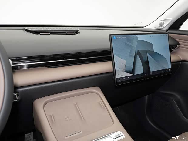 顶配车型中控15.6英寸悬浮式中控屏可以左右滑动,移动到副驾前方作为娱乐屏使用,极具创意,内置高通骁龙8155芯片,手机无线充电和256色音律氛围灯在新车上都有配备。其他车型的中控为固定式,但次顶配车型可以选装滑动中控屏功能。