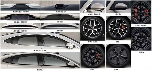 选装方面,车辆将提供激光雷达罩盖、后保饰板、尾灯饰条、窗框饰条、后视镜、轮圈、卡钳色。动力方面,车辆将搭载纯电动力系统,此次申报了三种动力配置,两款单电机车型最大功率分别为245kW、300kW,双电机最大功率分别为200kW/300kW。