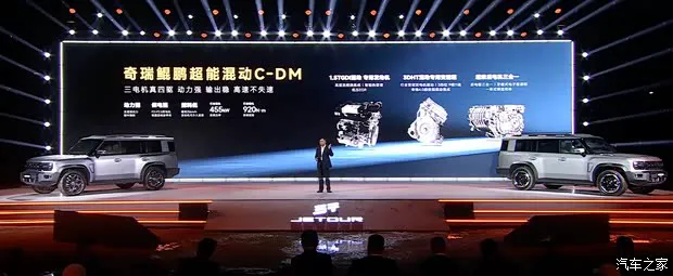 捷途旅行者PLUS C-DM搭载鲲鹏超能混动C-DM 1.5T插混系统,匹配双电机,系统综合功率455千瓦,综合扭矩920牛·米,CLTC纯电续航分别为129km、211km、212km,综合续航1300km,支持6.6kW对外交流放电。