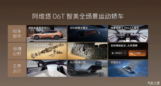 动力方面,车辆纯电版提供双电机后驱和三电机四驱版本,前电机最大功率均为210kW、两个后电机最大功率均为251kW,0-100km/h加速时间为2.78s(双电机版3.74s);配备89.33kWh电池,CLTC续航里程超740km;增程版车型配备1.5T发动机,发动机最大功率115千瓦,45.06kWh电池可为其提供330km的纯电续航,综合续航1250km。底盘方面,其将配备智能空气悬架+CDC动态阻尼减振器。编辑点评:从预售价和产品定位来看,阿维塔06T的竞争对手包括蔚来ET5T、极氪007GT以及奥迪E5 Sportback。作为后来者,阿维塔06T不仅拥有华为最新的技术,同时还提供纯电+增程双动力供消费者选择,使其能够在同级市场中脱颖而出。那么它的正式售价还能否带来更多惊喜,让我们共同期待。