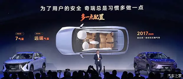 瑞虎7L(参数|询价)是一款5座SUV,前排座椅支持加热、通风和按摩等功能,副驾还提供了腿托,后备厢容积为478L和1417L。主动安全方面包括开门预警、自动紧急制动、后方碰撞预警、盲区监测等。