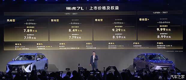 动力方面,新车搭载1.5T和1.6T涡轮增压发动机,最大功率分别为115千瓦和147千瓦,峰值扭矩分别为230牛·米和310牛·米,传动系统分别对应匹配6DCT和7DCT双离合变速箱。● 编辑点评:瑞虎7系列主打价值标杆,走性价比路线,瑞虎7L将家族的颜值提升到新高度。瑞虎7L在主动安全、舒适配置层面都相当齐全,并且提供两种动力选择,同样会是一款追求性价比的车型。
