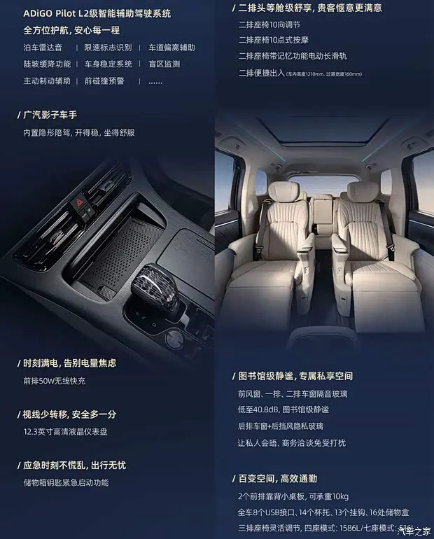 配置方面,该车全系标配14.6英寸中控屏(2.0尊享版车型支持CarLife)、12.3英寸液晶仪表、仿皮材质座椅、第二排座椅电动调节、第二排座椅加热/通风/按摩、全车8枚扬声器等。同时,此次上市车型还将配备前排50W无线快充、储物箱钥匙紧急启动功能、前排2个靠背小桌板等。动力方面,该车提供两种动力版本,2.0尊享版车型搭载2.0T发动机,最大功率为252马力,峰值扭矩400牛·米,传动方面匹配的是8AT变速箱;中高配车型则搭载2.0TM混动专用发动机与电动机组成的混动系统,发动机额定功率为190马力,峰值扭矩为330牛·米。传动方面,与之匹配的是2挡DHT变速箱。