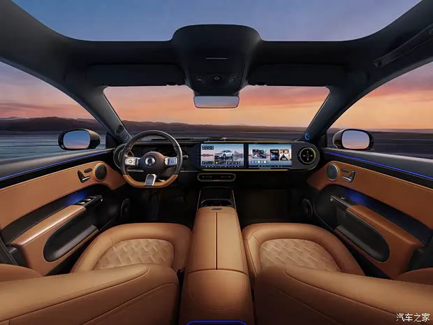 来看官图,新车内饰依旧采用家族式设计风格,中控触摸屏+副驾娱乐屏的双联屏设计十分抢眼。细节方面,新车配备20扬声器的森海塞尔音响系统,采用7.1.4布局,峰值功率超2000W,中央还配备悬浮式升降扬声器。空调出风口源自飞机涡轮造型,采用7层立体结构;车内配备近800处灯光点位,26处氛围灯支持256色自定义;座椅采用HDD绗缝复合工艺,并应用Nappa真皮。内饰颜色方面,新车提供格律黄、玄影黑和原野棕三种选择。