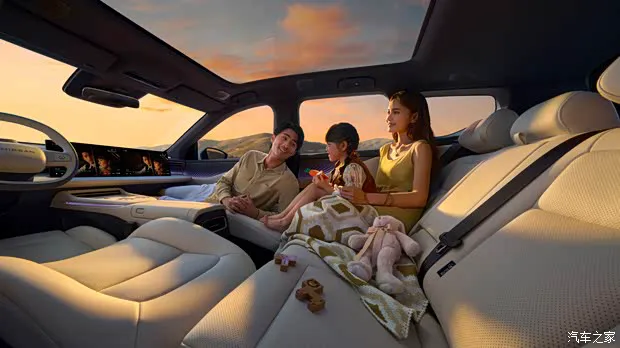 此外,新车还配备全域智能防晕车技术3.0版本,集成16项防晕车对策,并具备“AI智能防晕车算法”。AI模型能预测乘员的晕车状态,系统提前调节整车动力输出、动态调节车姿、优化冲击振动,将晕车概率降低80%以上。空间进阶:大五座布局