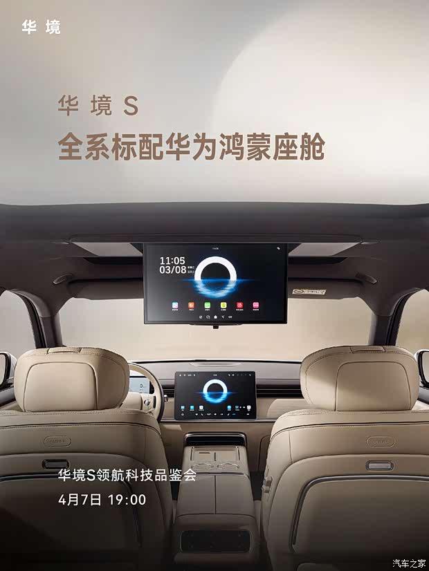 根据官方发布的内饰图来看,新车将会配备悬浮式设计的全液晶仪表盘,并搭配双色多功能方向盘,同时中控台中间配备了大尺寸的悬浮式多媒体触控屏,此外,中控通道区域还配备了无线充电面板以及双杯架和双开门的扶手箱。此外,新车后配将配备吸顶屏,整车内部采用2+2+2的六座布局,二排座椅还采用航空独立座椅,以及二排双侧小桌板,同时副驾座椅上还带有老板键功能。据悉,华境S全系标配华为乾崑、华为鸿蒙座舱、乾崑车云HUAWEI IVCS,并搭载华为舱内激光视觉(Limera)功能。