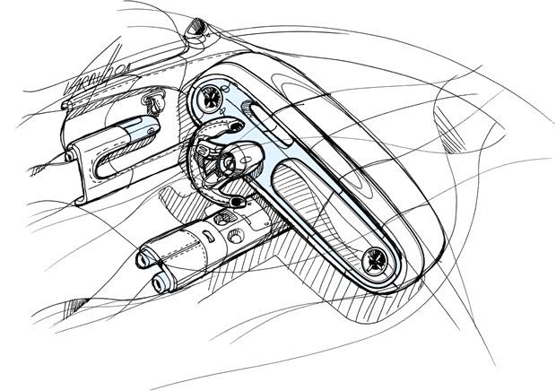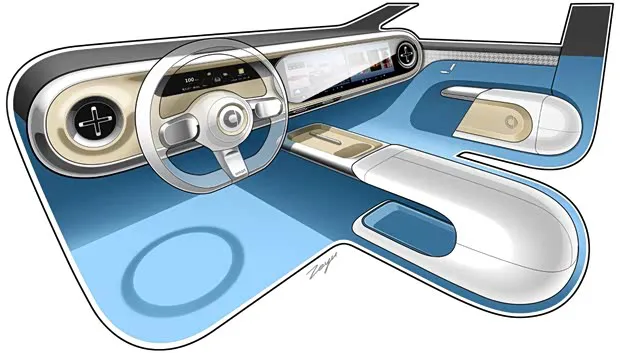 根据设计草图来看,新车将采用整体贯穿式的中控台造型,将内嵌矩形全液晶仪表盘,以及中控触摸屏+副驾娱乐屏的双联屏设计,并且双联屏的边框还采用经典的胶囊设计元素,整体搭配与精灵#5有异曲同工之处,展现家族式的设计理念。同时中控台通道区域配备了无线充电面板,以及横置的双杯架,中间的储物格则采用“双开门”设计。