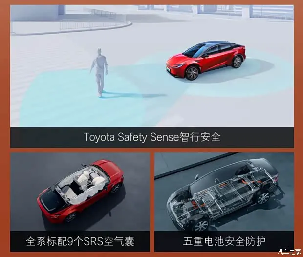 车内除了熟悉的丰田bZ系列多功能方向盘外,还配备了15.6英寸中控屏以及10枚JBL扬声器,还提供车载香氛、256色氛围灯、50W无线快充、前排座椅加热、手势控制、全景天幕等。新车在安全层面也有突出表现,包括配置前后碰撞预警、前排膝部气囊、前排中央气囊、头部侧气帘等。
