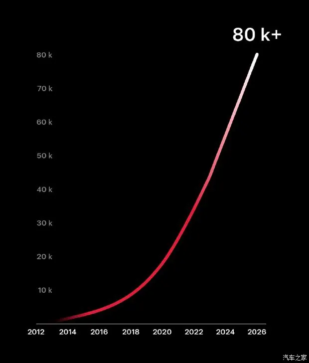 数据显示,2025年6月,特斯拉全球超充桩数量突破70000根,截至2026年4月攀升至80000根,不到十个月内新增10000根。2026年第一季度,特斯拉新开通约2500根超级充电桩,平均每天新增超27根。