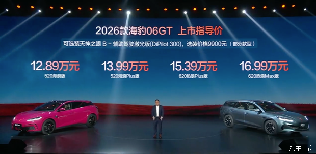 2026款海豹06GT 官方指导售价 车型 售价(万元) 520海浪版 12.89 520海浪Plus版 13.99 620热浪Plus版 15.39 620热浪Max版 16.99 2026款海豹06 DM-i旅行版 官方指导售价 车型 售价(万元) 200舒享型 11.19 200智享型 11.99 200尊享型 12.99 300旗舰型 13.99