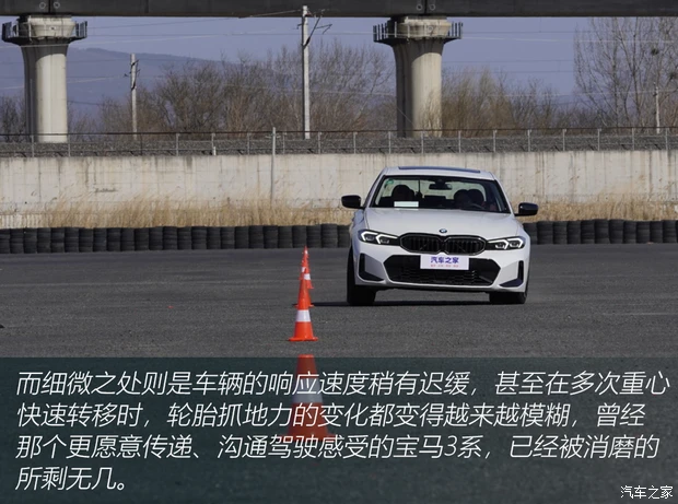 更多精彩视频,尽在汽车之家视频平台绕桩绕桩测试中,宝马3系的表现并没有初期版车型表现那么轻松,更软的悬架设定,导致车辆在左右重心转移时用时更长,且车辆侧倾更大,从车手主观感受角度来看,会对车辆的信心不足。