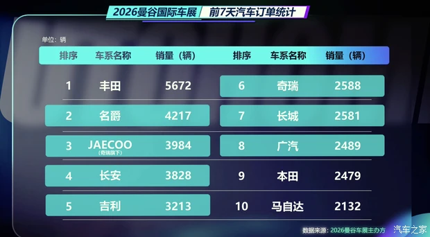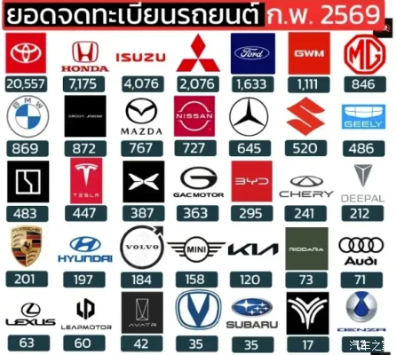 2026年2月泰国各汽车品牌销量图(来源:car250)谁知剧情再次反转。3月,一场中东局势引发的油价风暴席卷泰国,车主的“生存焦虑”被点燃:凌晨加油站排起长龙,有的站点限加500泰铢(约合106元人民币),排两三次长队才能喂饱油箱。更魔幻的是,有人搬出塑料桶囤油,甚至连寺庙都报告,火化用的燃油都短缺了。就在这片“燃油焦虑”下,一墙之隔的曼谷国际车展成了中国品牌的“高光舞台”。前七天的订单显示,前十名中中国品牌横扫七席(比亚迪将在车展最后一天公布订单数)。