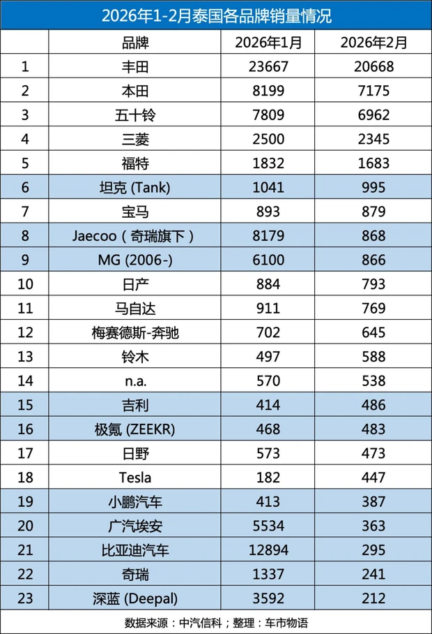数据反馈极其剧烈:泰国2月纯电销量仅6168辆,较1月暴跌八成。要知道,中国品牌占据该市场超80%份额。