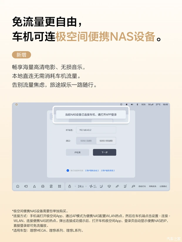 娱乐与实用功能方面,智能座舱新增绿联云 App,用户可在车内安全访问家中NAS里的4K电影、无损音乐等资源,将家庭影音库搬到车上;极空间便携NAS的体验也同步升级,支持车机免流量连接播放,彻底告别影音播放的流量焦虑,该App近期将在应用商店上线。艺术相框功能也迎来全新玩法,上线盲盒模板屏保。用户点击艺术相框首页 “看看理想同学在干嘛” 主题,即可进入生成流程,系统会从旷野、云朵、海底世界、恐龙、热气球、蘑菇等主题中随机抽取一个进行AI创作,可生成图片或视频形式的屏保。该功能每日每车限制生成视频4次、图片4次,系统会根据剩余使用次数随机生成对应形式,次数不足时则仅生成剩余类型的屏保。(AI编译/汽车之家 毕业)