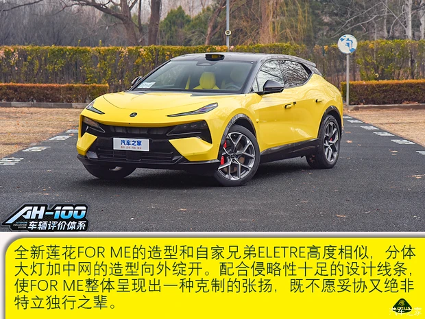 车身尺寸方面,这款车的长宽高分别为5103mm/2019mm/1636mm,轴距为3019mm。莲花FOR ME标配了21英寸的运动轮毂,搭配倍耐力P Zero LTS定制轮胎,以及Brembo前六活塞制动卡钳,无不彰显其性能基因。
