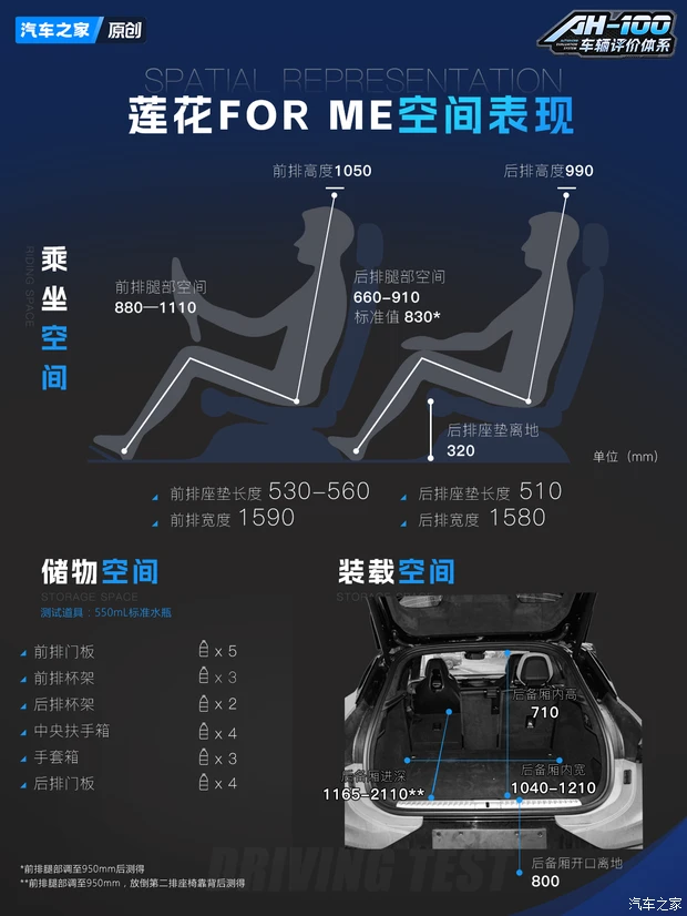 虽说是运动化的设计风格,但毕竟是一台车长超过5米的中大型SUV,车内空间几乎没有受到外形的干扰。后备厢标准容积688升,放倒后排座椅后可被拓展至1532升,完全可以满足日常的各种装载需求。前排头部空间1050毫米,二排990毫米,体验下来都算比较宽裕的,另外就是前后排座椅座垫长度都超过了500毫米,对腿部的承托足够到位。说完了静态部分,我们先将这台主打运动的性能怪兽拉到封闭测试场,来看看表现究竟如何。