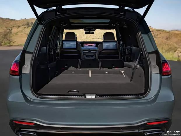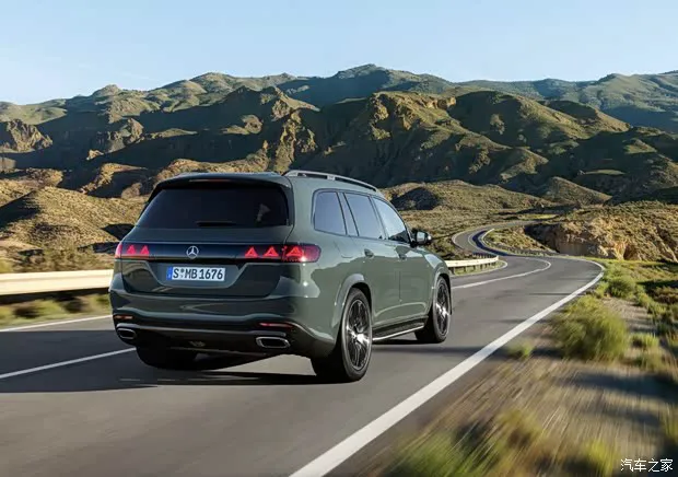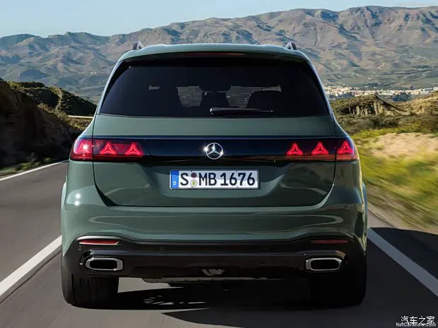 车身侧面线条沉稳舒展,车身尺寸保持全尺寸SUV水准,保证三排宽敞空间与旗舰气场。同时,车辆还提供21-23英寸多辐轮圈可选。车辆尾部,新车升级了与新款E级同源的贯穿式尾灯,后保险杠与牌照框区域同步微调,整体更精致大气。