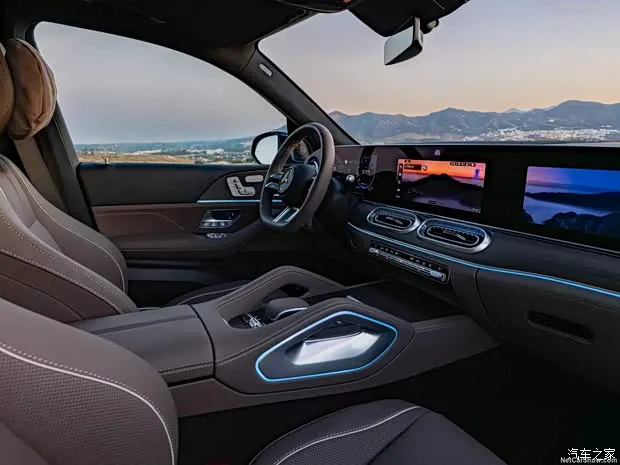 内饰部分,新款GLS搭载MBUX Superscreen超联屏,由12.3英寸仪表 +14 英寸中控屏+14英寸副驾屏组成,整块玻璃覆盖,科技感拉满。同时车辆还保留了常用实体按键,兼顾触控便捷与盲操安全。同时,车辆还提供全新方向盘、圆形空调出风口、3D纹理座与多种内饰配色可选。高配车型提供座椅震动按摩、后排独立娱乐系统,豪华感与舒适性全面提升。此外,车机支持AI虚拟助手、OTA升级、车联网与多屏互联,驾驶辅助系统同步更新,高速领航、主动刹车等功能更加完善。