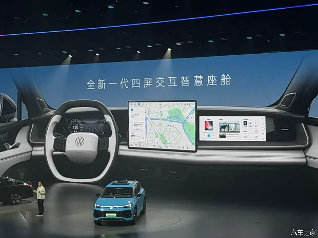 内饰方面,该车采用环抱式设计,并采用全新一代四屏交互智慧座舱,有着不错的科技感。具体来看,其采用双辐式多功能方向盘以及悬浮式中控屏以及副驾驶娱乐屏,符合当下用户用车需求。