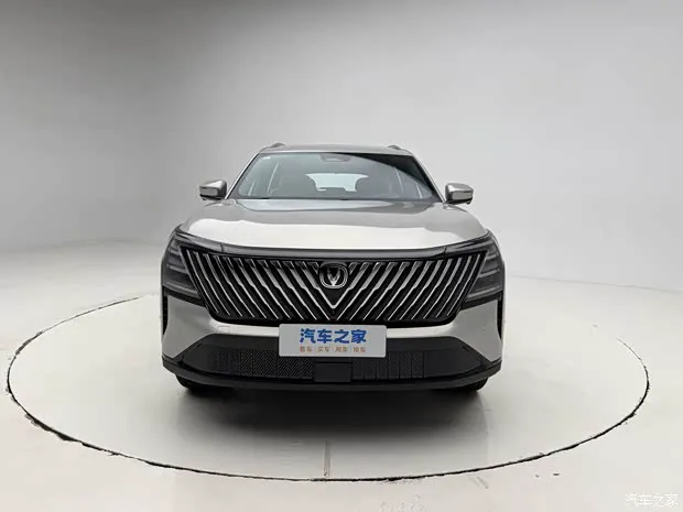 长安CS75 PLUS HEV在外观设计上采用大尺寸前格栅搭配V型镀铬中网设计,上方还配备了贯穿式的LED日间行车灯组,两侧的大灯组则与横向三横幅样式的LED灯组合为一体式,下方还延伸出一个纵向布局的通风道。新车前包围则采用了大面积的梯形散热开口,并配备主动格栅功能。