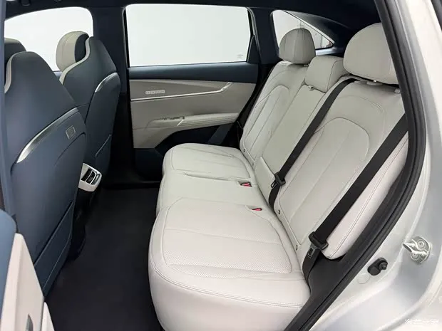 车身侧面,新车腰线贯穿车身,前侧翼子板微微宽出车体形成宽体视觉效果,车门面板较为平整,并使用了传统的机械门把手设计,车窗边框与侧裙位置均有镀铬装饰点缀,同时车辆还将会拥有18英寸、19英寸以及20英寸的三款轮圈可选。车身尺寸方面,新车长宽高分别为4770/1910/1698(1705)mm,轴距为2800mm。