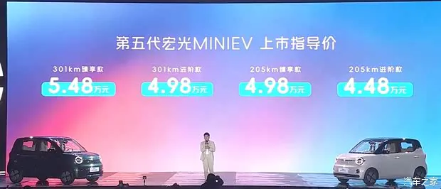 五菱全新宏光MINIEV 官方售价 车型 上市指导价(万元) 置换补贴价(万元) 205km进阶款 4.48 4.28 205km臻享款 4.98 4.68 301km进阶款 4.98 4.78 301km臻享款 5.48 5.18