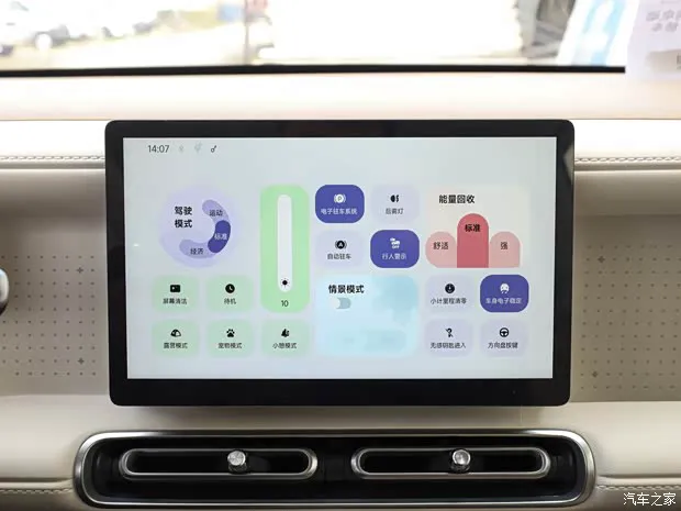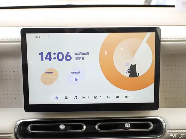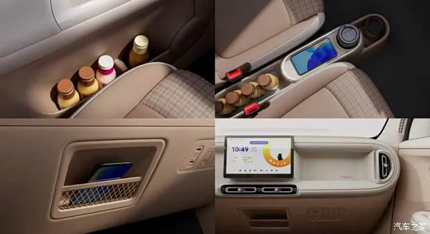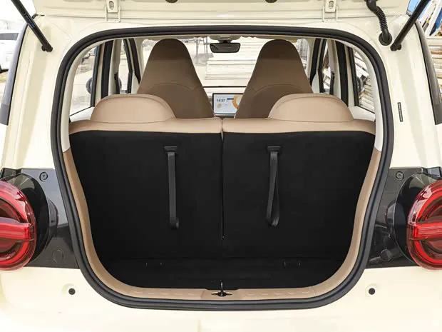 车辆尾部,尾灯的样式与头灯呼应,依然是可爱的圆形造型,尾门的尺寸更大,提取行李更加方便。新车提供绿悠悠、白绒绒、灰萌萌三款全新车色,采用八层涂色工艺。新车可实现无感进入和锁车,无需掏钥匙,上车踩刹车即可启动。内饰:车机系统升级 注重空间实用性