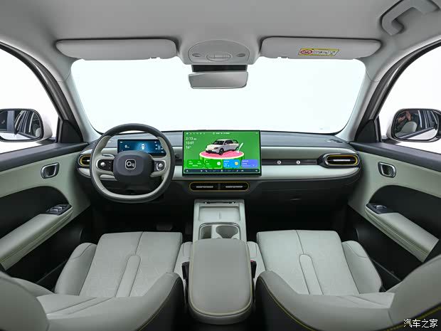 外观方面,新车整体造型采用了全新的设计理念,但也继承了QQ系列的一部分设计语言。例如新车前大灯组依旧采用圆润的设计风格,内置LED日间行车灯组;新车前脸采用了封闭式的设计,前包围整体造型非常简约,仅在下方设置了散热开口。车身侧面,新车配备了半隐藏式的车门拉手,前后侧翼子板配备了黑色的轮眉,并拥有16英寸与17英寸的轮圈可选。