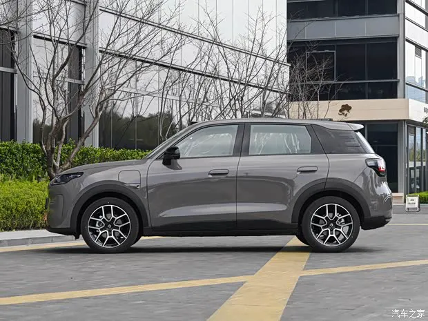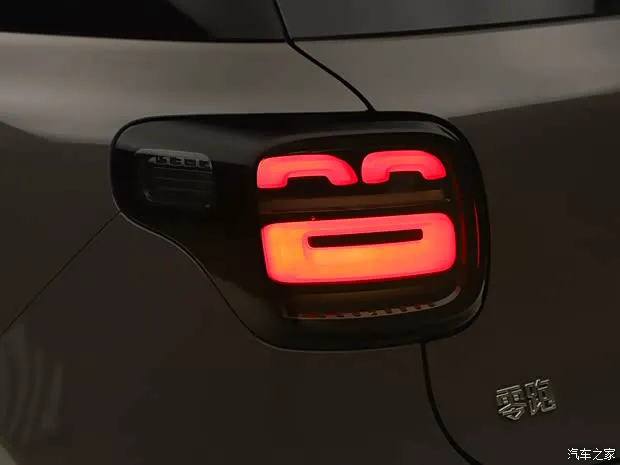 车身侧面,新车整体比例非常短小精干,前后轮眉采用宽厚的黑面设计营造跨界质感,D柱不仅通过熏黑营造出悬浮式车顶的视觉效果,还加入了小装饰展现活泼。车身尺寸方面,零跑A10长宽高分别为4270/1810/1635mm,轴距2605mm,轮圈尺寸为18英寸。车辆尾部最大亮点是其配备“哈哈尾灯”,点亮后效果十分俏皮可爱。