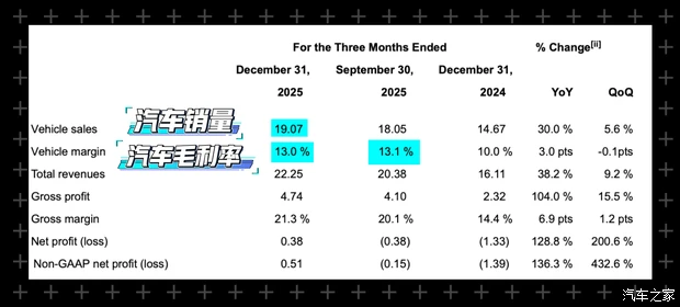 你是不是觉得,小鹏多年的媳妇熬成婆,只要努力加把劲,全年盈利就不在话下了?事情还真没那么简单:小鹏四季度卖了11.6万辆车,汽车业务的毛利率从上季度的13.1%,下滑到了13%,车卖的更多了,毛利率反而下降了0.1%。