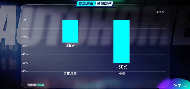 也就是说,没有这笔天降的补贴,这季度,小鹏大概率还是亏的!这就是市场不买账的核心原因!资本市场看的不是你现在赚没赚,是你这个盈利,明年还能不能复制?答案是,不确定。盈利能否持续?当然,股价暴跌8%的另外一个因素,是小鹏给的一季度营收指引,太拉胯,资本市场对他能否持续盈利,也画上了第二个问号。一季度的营收预期,是 122 亿到 133 亿,你还记得我刚刚说的四季度营收吗?是222亿,222亿到133亿,营收几乎腰斩。营收腰斩的主要原因,是小鹏的车卖不动了。根据乘联会数据,今年前两个月,新能车整体销量同比下滑26%,而小鹏销量下滑50%。
