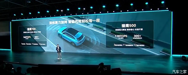 驾驶辅助方面,新车入门版车型将搭载猎鹰200智能辅助驾驶系统;其它版本则会配备猎鹰500智能辅助驾驶系统;高配车型可选装升级猎鹰700辅助驾驶,包括车顶激光雷达+地平线征程6P辅助驾驶芯片以及智驾小蓝灯等,共27颗传感器,算力560TOPS,支持城市NOA、高速NOA双场景领航和全场景自动泊车等。