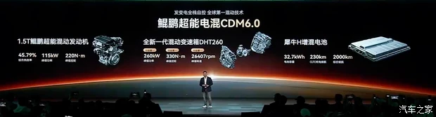 动力方面,新车搭载鲲鹏超能混动CDM6.0系统,入门版车型采用1.5L发动机(82kW)+160kW电机+DHT160变速箱的组合,综合最大功率242kW;其它版本搭载1.5T发动机(115kW)+260kW电机+DHT260变速箱的组合,综合最大功率375kW;另外其还搭载犀牛H增混电池,容量32.7kWh,CLTC纯电续航135km/230km,综合续航2000km。底盘采用前麦弗逊、后全铝H臂四连杆独立悬架,还会搭载CDC电磁减振器。编辑点评:从命名来看,风云T9L应该算是对产品阵容的补充,定位略高于风云T9。不过自从它在去年年底首次亮相后,发现并不是简单的在后缀加了个“L”,它从外到内进行了非常全面的升级,不仅产品力有着大幅提升,也使它成为奇瑞风云系列开启2.0时代的开山之作。那么您认为这次它的预售价是否足够打动您?期待您的精彩留言。