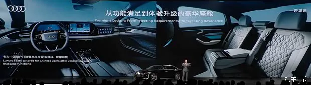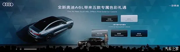 车辆尾部,新车引入分体式第二代OLED尾灯,刹车灯采用黑色模块,隐藏在黑色外漆中,提供8种个性化签名和car-to-x车联网通信功能。创新性融入发光LOGO和本土化开发的贯穿式灯带。全新奥迪A6L提供5款车漆颜色,除传奇黑与茉莉白外,香槟黑、深海蓝和曼达洛银三款为中国专属车漆颜色。两个外观版本车型会在后包围处有所差异,带有镀铬装饰和纯黑化的风格。内饰:注重内饰氛围的营造