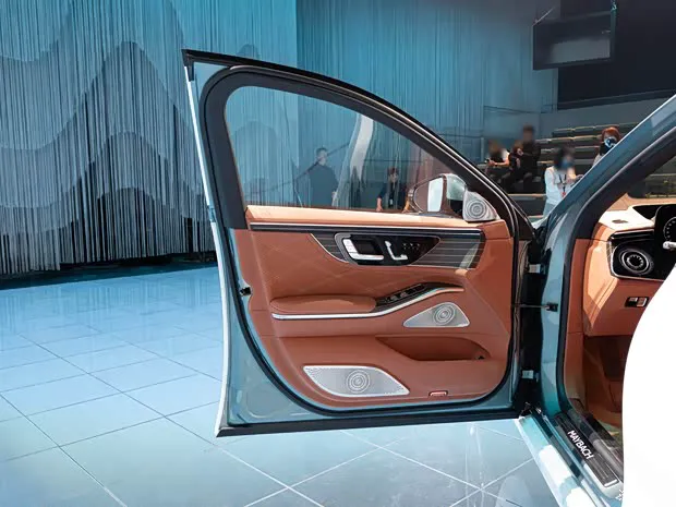 主动式环境氛围灯包含199颗LED光源、10种色彩组合以及64色独立可调色谱,其中包括迈巴赫专属的玫瑰金与紫水晶色调。氛围灯甚至可以响应语音指令、空调调节与辅助驾驶系统提示。Burmester 4D环绕立体声音响系统,由35个扬声器与8个座椅振荡器组成,总功率1690瓦,结合杜比全景声,带来超越音乐厅的录音棚级声场体验;系统开启时,精致华美的高音扬声器以360°协作旋转。专属12号香氛散发月桂花香。